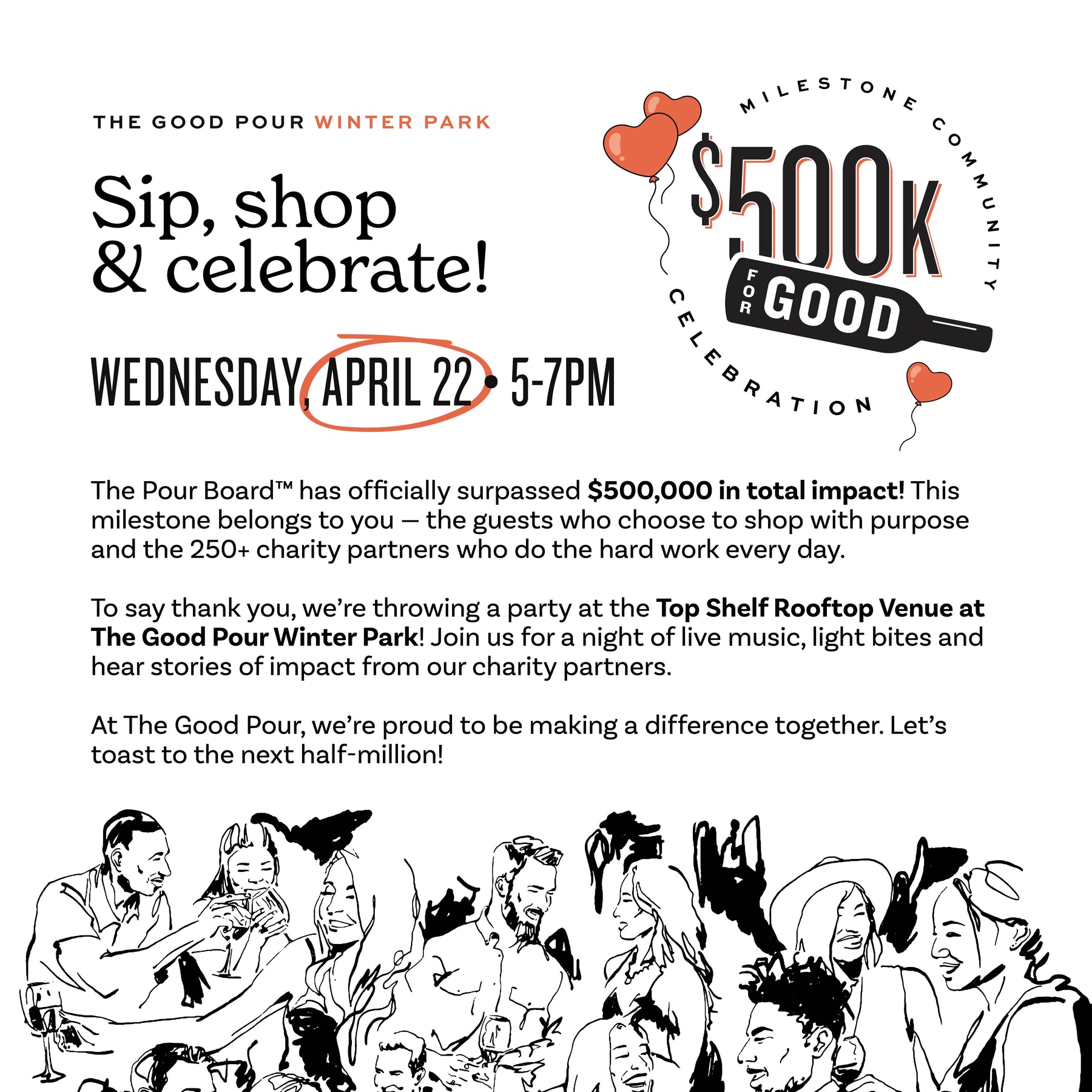 At The Good Pour, we’re proud to be making a difference together. Let’s toast to the next half-million!